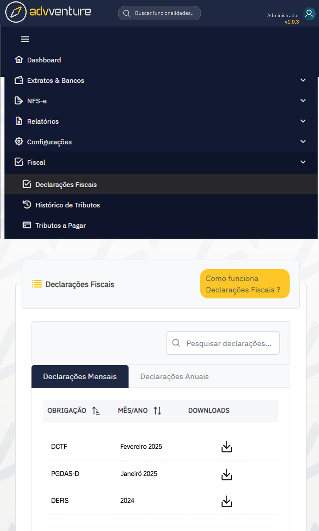 - Armazenamento seguro de DARFs, recibos, declarações e notificações.